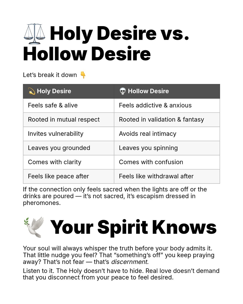 • How to listen to your spirit, not your fear or loneliness