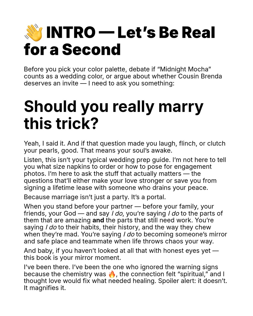 Before You Say ‘I Do’ is a raw, practical, modern guide designed to help you answer one of the biggest questions you’ll ever face:
