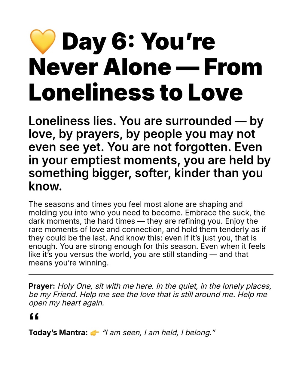 Each day includes a short reflection, a gentle prayer (or energy blessing), and a grounding mantra to help you breathe, realign, and remember who you are.