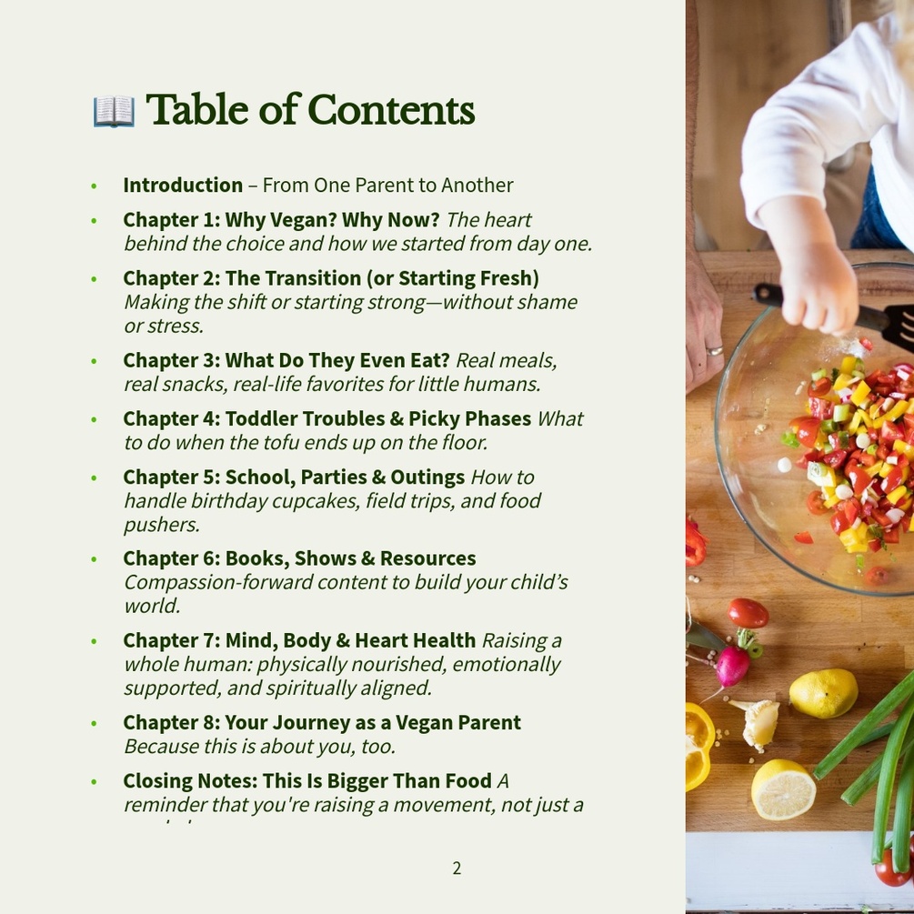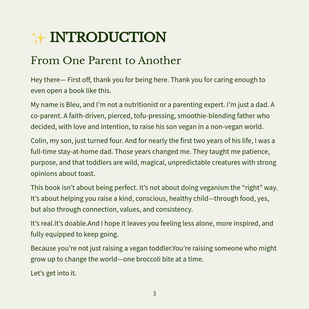 Whether you’re just starting your vegan parenting journey or figuring it out one snack at a time, Raising Kind is your real-world companion. Written by a former stay-at-home dad, this 34-page guide is full of genuine encouragement, personal stories, and down-to-earth advice for navigating life with a plant-based toddler.